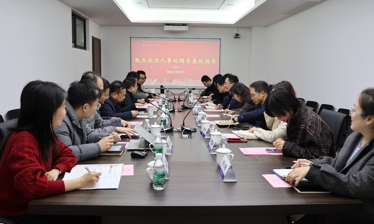 为贯彻落实学校第十七次党代会决策部署,切实推进学校进一步全面深化改革,进一步了解学院人事人才工作情况,3月18日下午,校长助理、人事处处长、高级人才办公室主任崔海涛带领人事处一行深入色情视频 开展人事人才工作调研。人事处领导班子、相关科室负责人,色情视频 领导班子、院长助理、系所负责人、高层次人才代表和教师代表参加了本次会议。