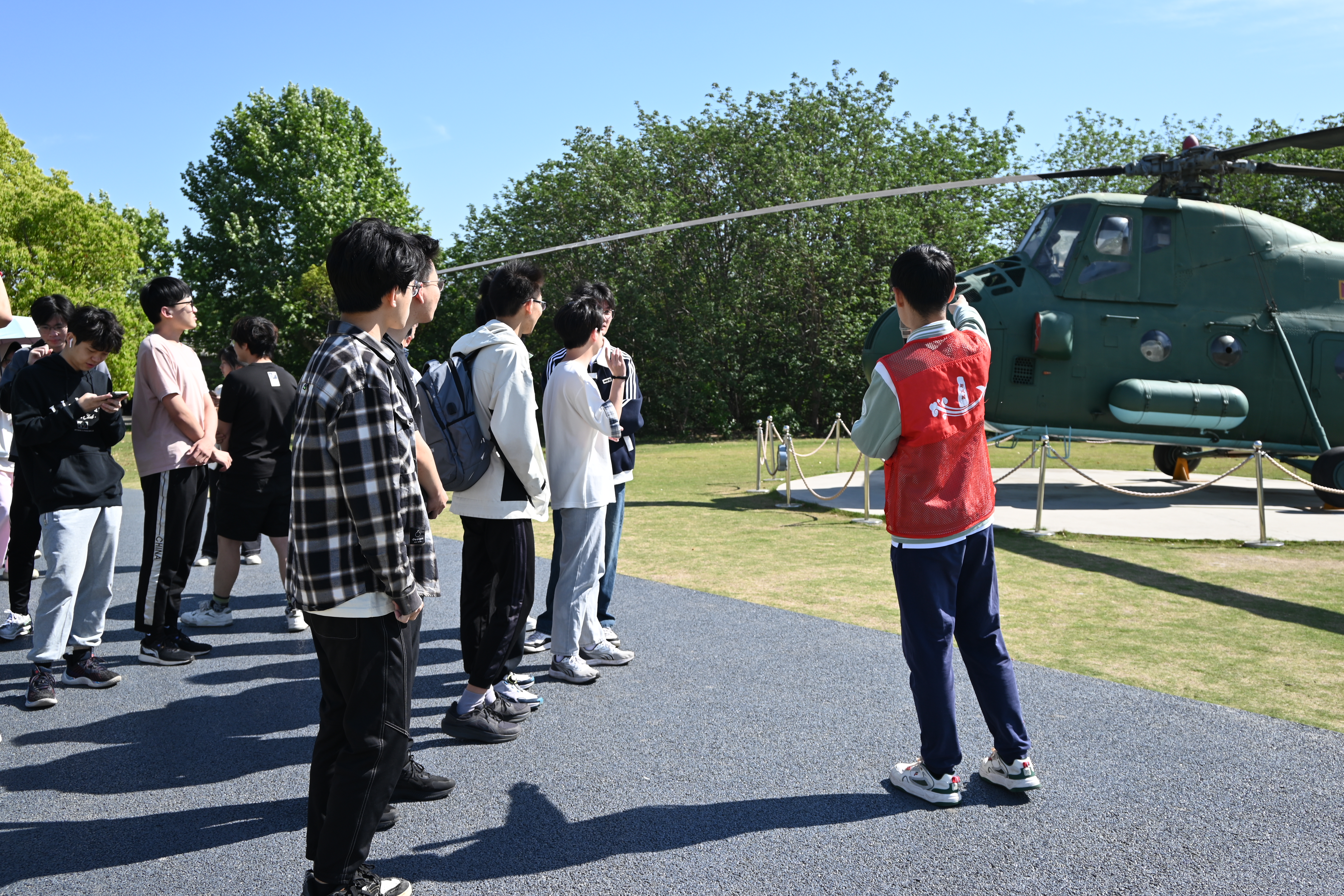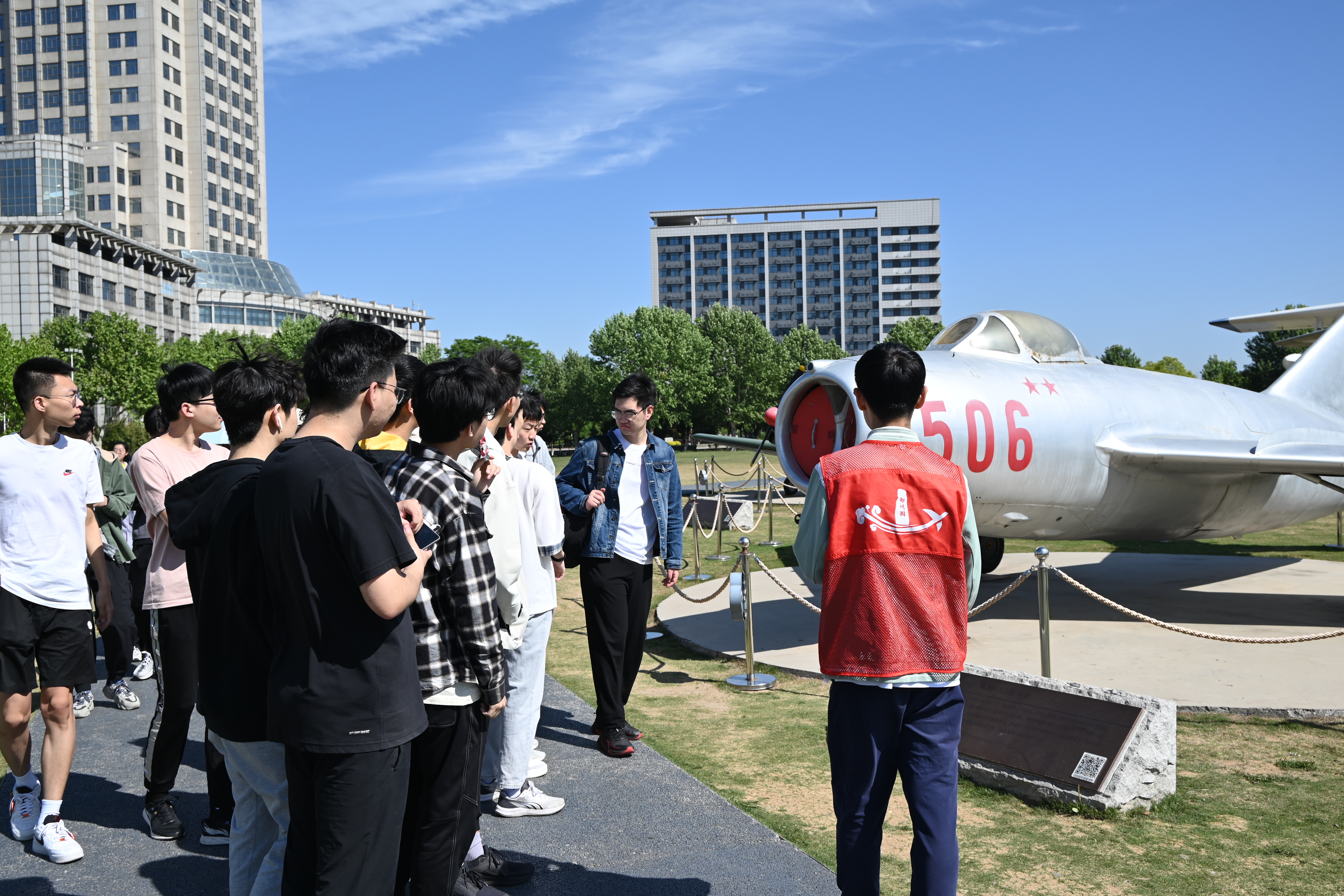 恰逢中国航天日到来之际,组织团员前往御风园开展主题团日活动。邀请讲解员讲解御风园中航空器的历史,感悟航空航天精神。御风园中有新中国自行生产的第一架飞机初教-5、我国第一种多用途直升机直-5直升机、歼8-II和AG600水陆两栖飞机等19架航空航天器,这些航空器都是无数航空航天人自主创新、攻坚克难的智慧结晶,象征着祖国航空航天事业的不断攀登与突破,见证着南航人对航空报国与航天报国的坚守。在讲解员生动的讲述中,全体团员深刻感受到了一代代南航人以祖国至上的赤子之心和甘于奉献的家国情怀,投身于航空航天事业。