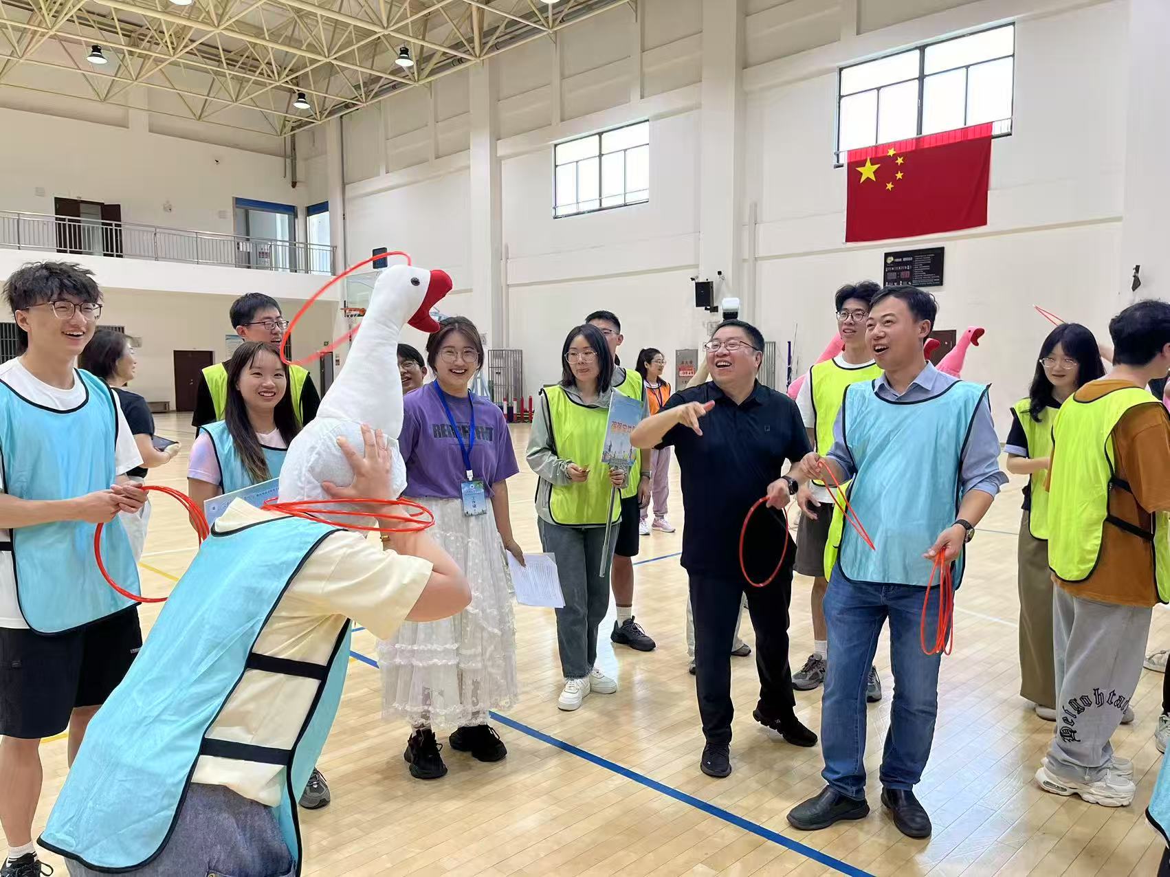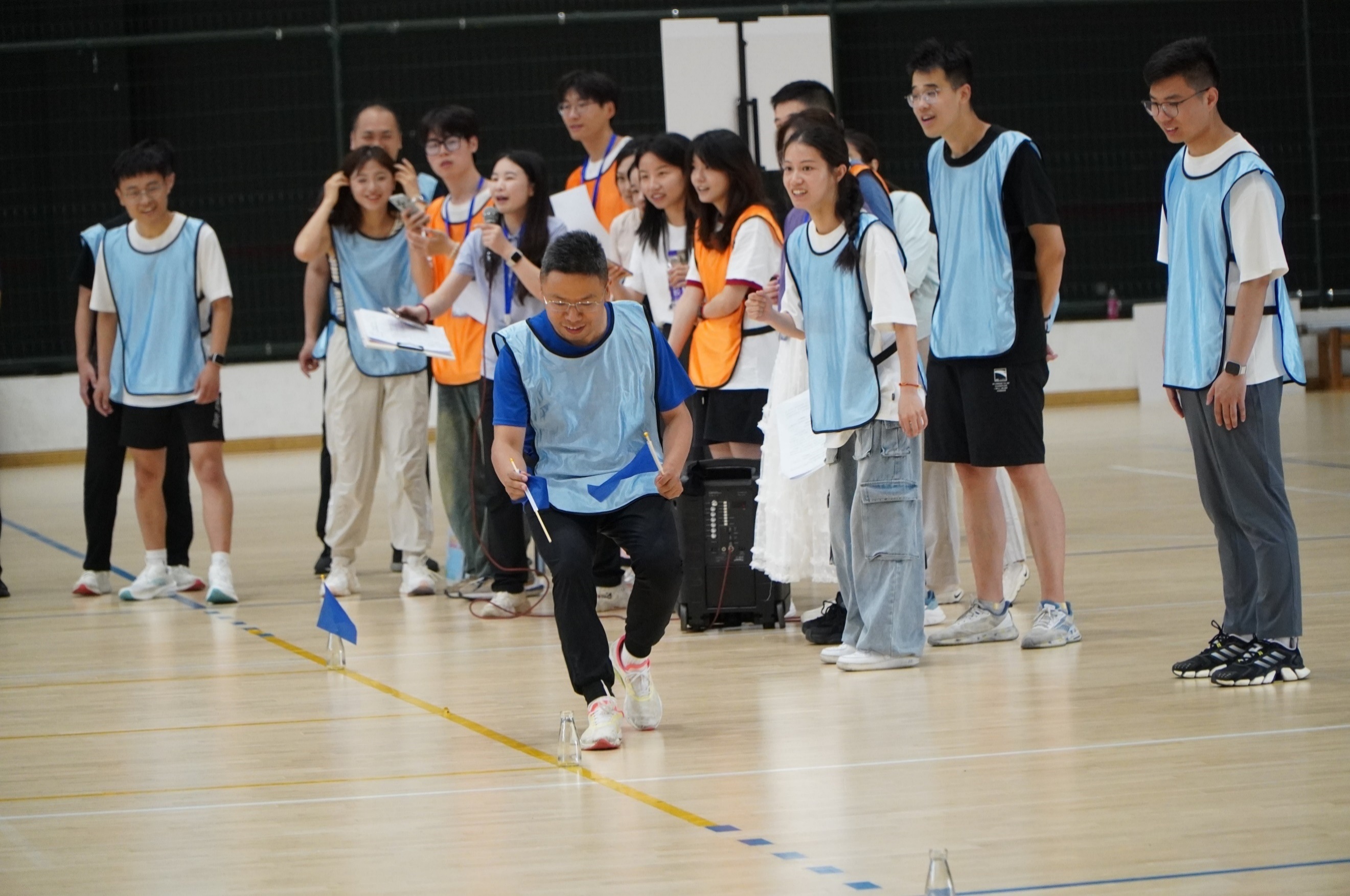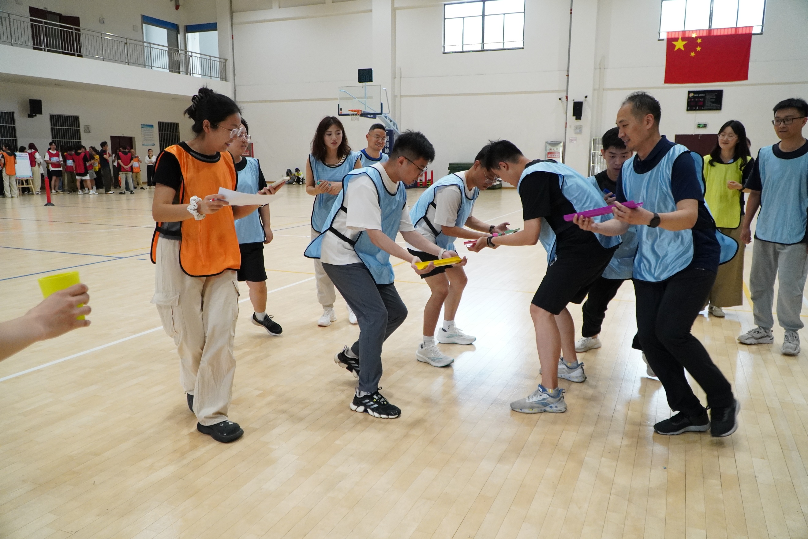 运动会设置了欢乐套大鹅、拔旗接力、大脚板竞走、珠行千里、聚力争锋五个趣味项目,采用积分制进行团队排名。现场气氛热烈,欢声笑语不断,参赛师生配合默契、奋勇争先,在运动中舒缓身心,在合作中凝聚力量。经过激烈角逐,施不可挡队获得一等奖,陈王称霸队获得二等奖,强强与共队和崔人奋进队获得三等奖。