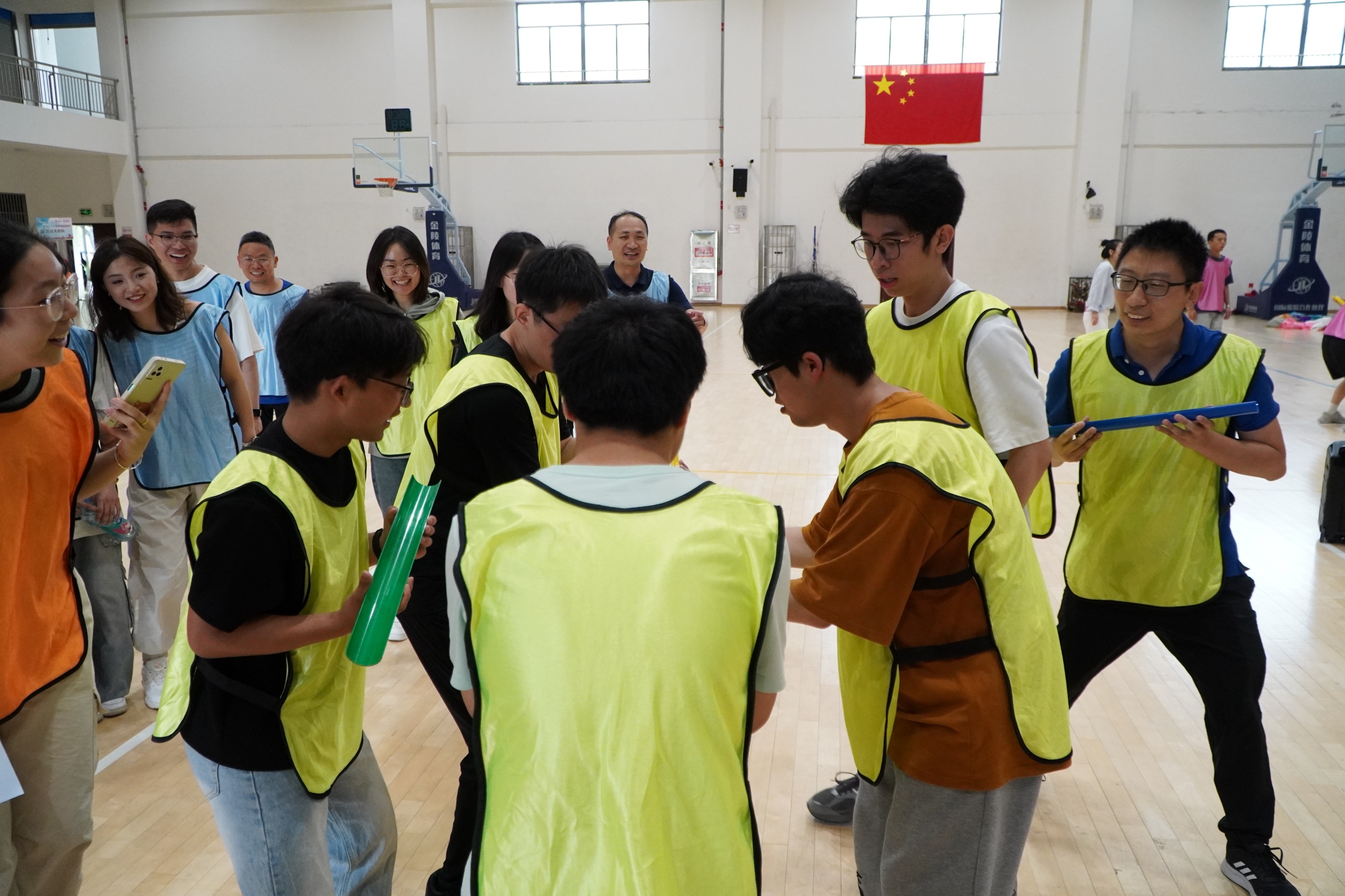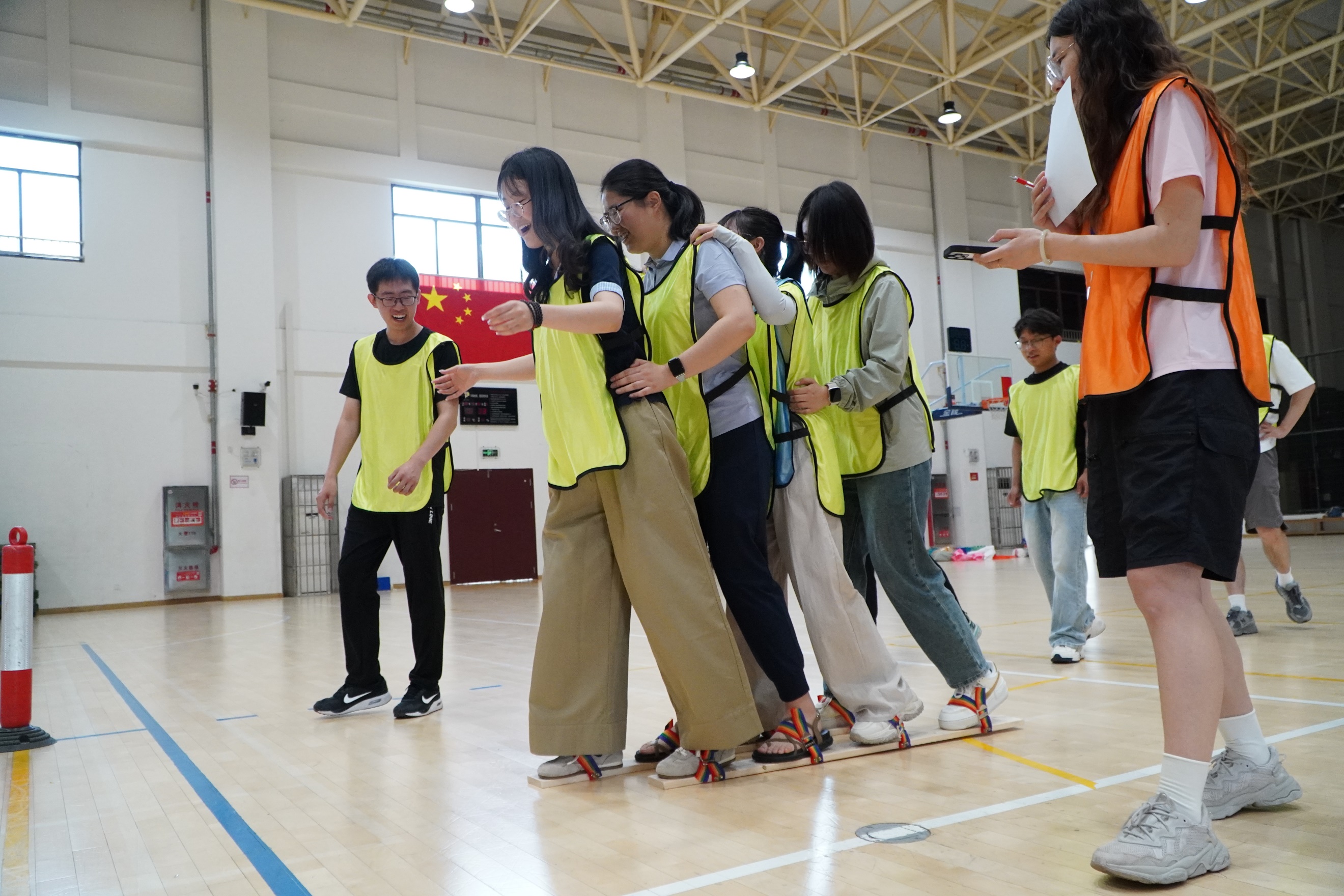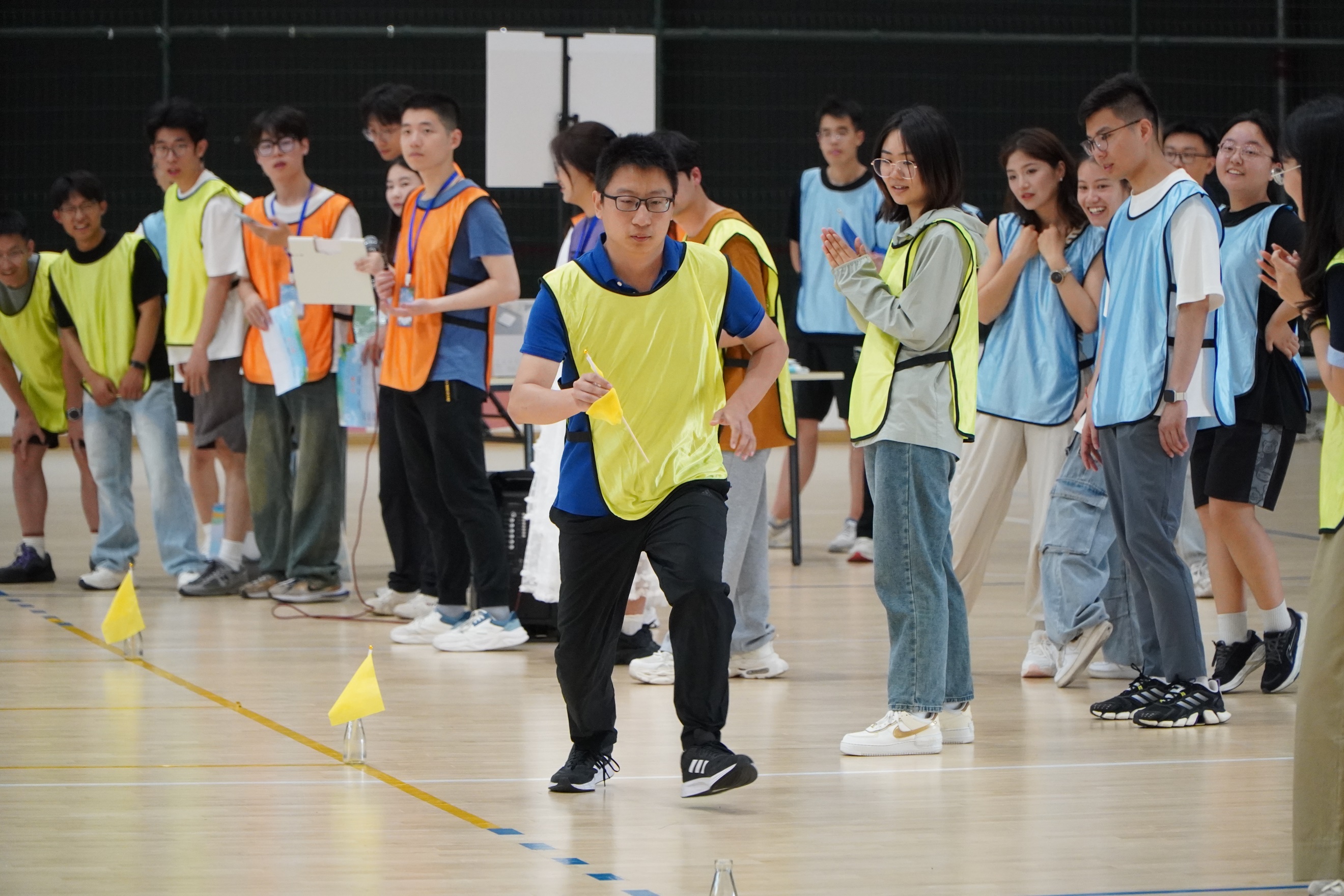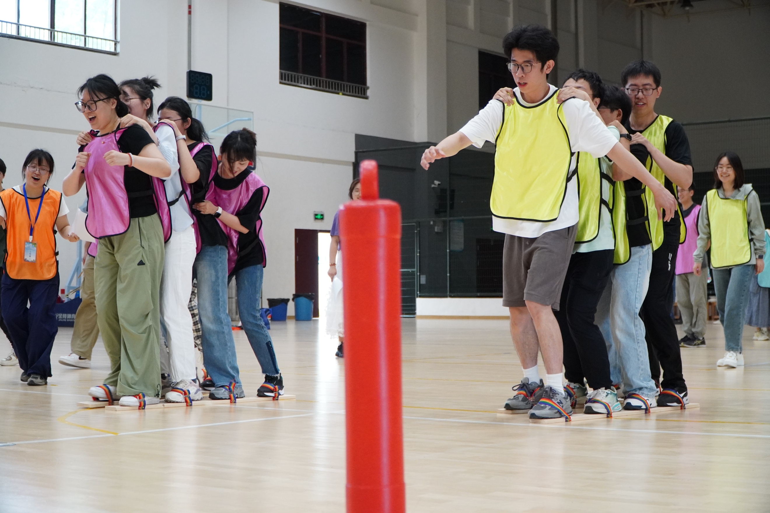 运动会设置了欢乐套大鹅、拔旗接力、大脚板竞走、珠行千里、聚力争锋五个趣味项目,采用积分制进行团队排名。现场气氛热烈,欢声笑语不断,参赛师生配合默契、奋勇争先,在运动中舒缓身心,在合作中凝聚力量。经过激烈角逐,施不可挡队获得一等奖,陈王称霸队获得二等奖,强强与共队和崔人奋进队获得三等奖。