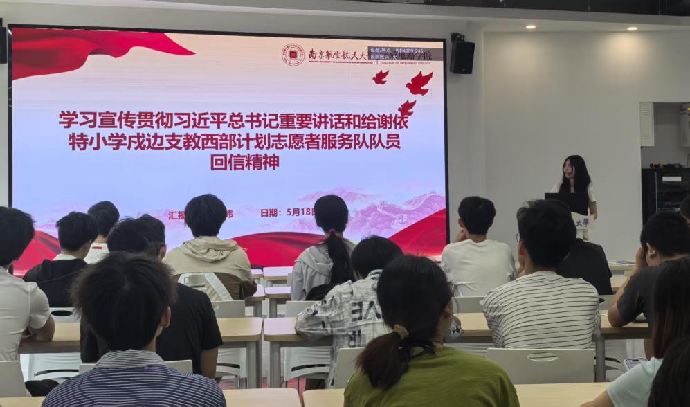 活动特别邀请学院兼职辅导员、马克思主义学院研究生童祎祎作专题分享,她从大学生志愿服务西部计划实施的时代背景与战略意义、思想内涵与价值启示、实践方向与行动指南三大部分系统解读了习近平总书记回信的精神内涵。她通过钩沉支教西部计划志愿者服务队全体人员戍边的教化传统、教育情怀,阐述了支教工作厚重的文化底蕴,通过讲述历代教育者“筚路蓝缕,以启山林”的感人事迹,体现了“教育戍边”的精神图腾。将青年支教者的个体经历升华为集体记忆,通过“小故事”诠释“大历史”,让各位同学在历史镜像中照见自己的使命担当。由此激励各位同学将个人理想融入国家发展,在边疆教育的广袤天地中实现自我的人生价值。