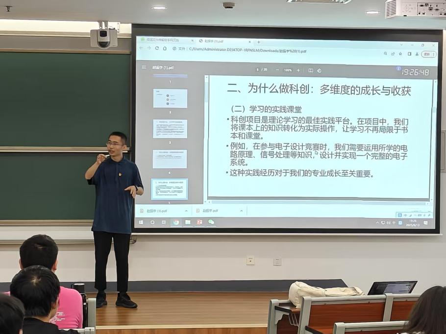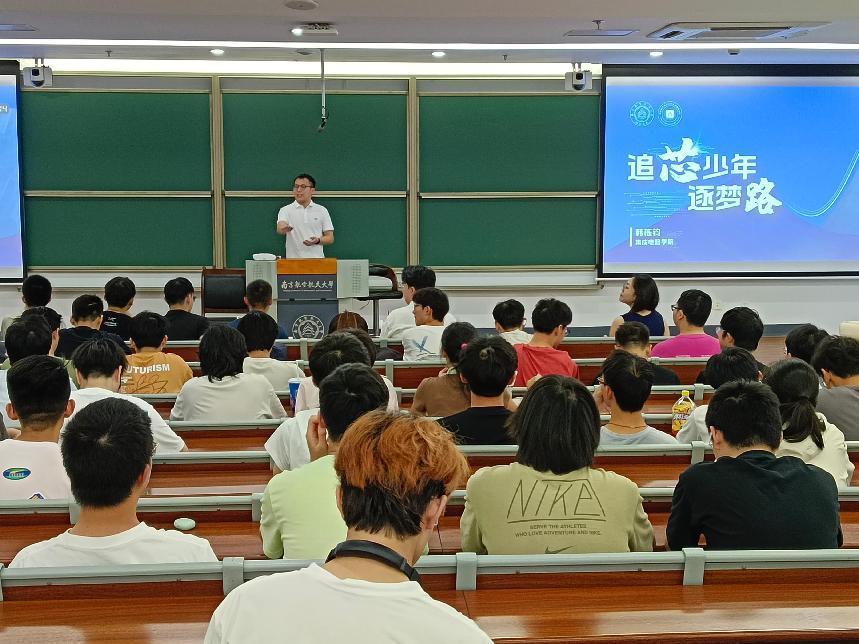 为帮助低年级学生做好学业规划与职业发展准备,了解保研及就业的最新政策及相关经验,色情视频 于6月13日在天目湖校区开展“芯光璀璨,共话未来”保研就业经验分享会,活动邀请2021级三位优秀本科生代表韩栋钧、赵振宇、刘阳进行专题分享,2023级、2024级全体学生参与。