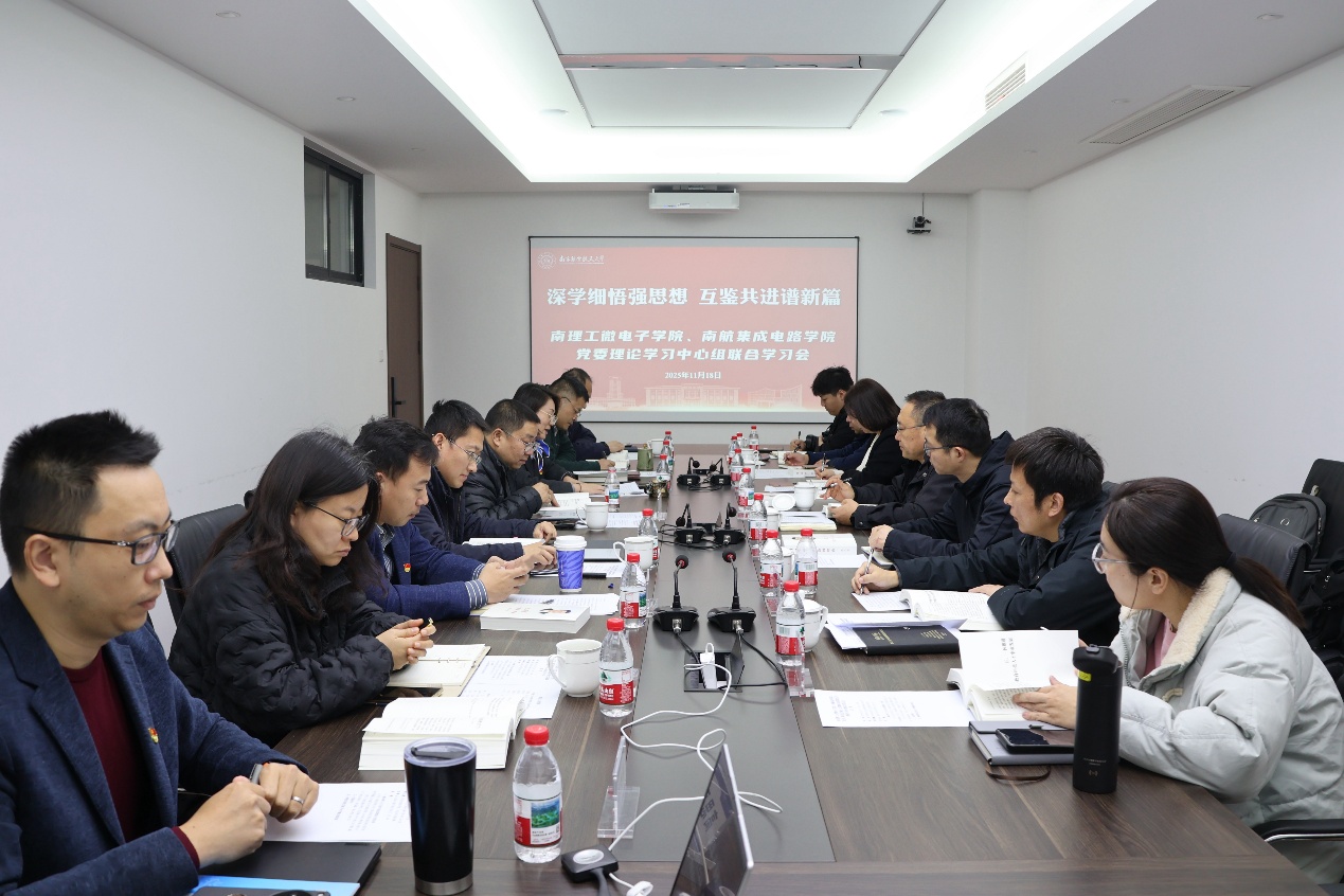 11月18日,南航色情视频 与南京理工大学微电子学院(色情视频 )举办“深学细悟强思想,互鉴共进谱新篇”党委理论学习中心组联合学习会。两院党委理论学习中心组成员集体学习了《习近平谈治国理政》第五卷有关篇目,会议由南航色情视频 党委书记黄彬主持。