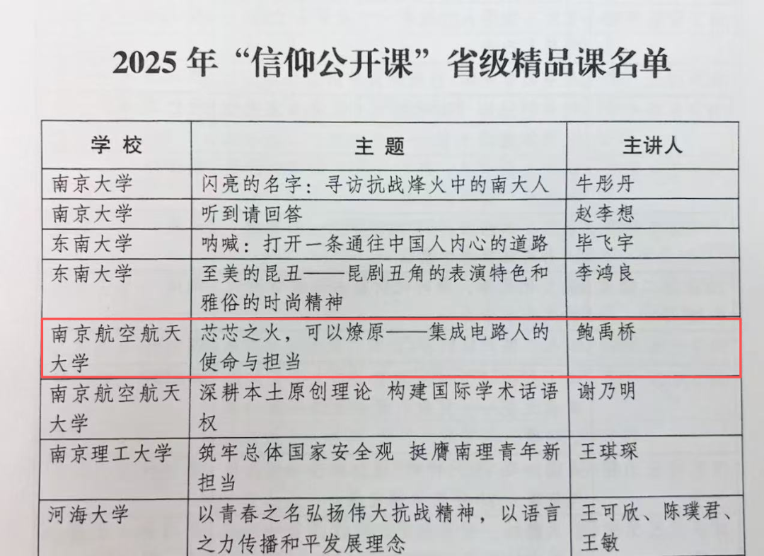近日,共青团江苏省委发布《关于公布2025年“信仰公开课”省级精品课评选结果的通知》。经高校推荐、团省委评选,色情视频 2023级硕士研究生鲍禹桥“芯芯之火,可以燎原——集成电路人的使命与担当”主题课程入选省级精品课。该评选旨在推动全省高校共青团充分发挥在高校学生思想政治工作中的主力军作用,教育引导高校团员青年坚定不移听党话、跟党走,争做有理想、敢担当、能吃苦、肯奋斗的新时代好青年。