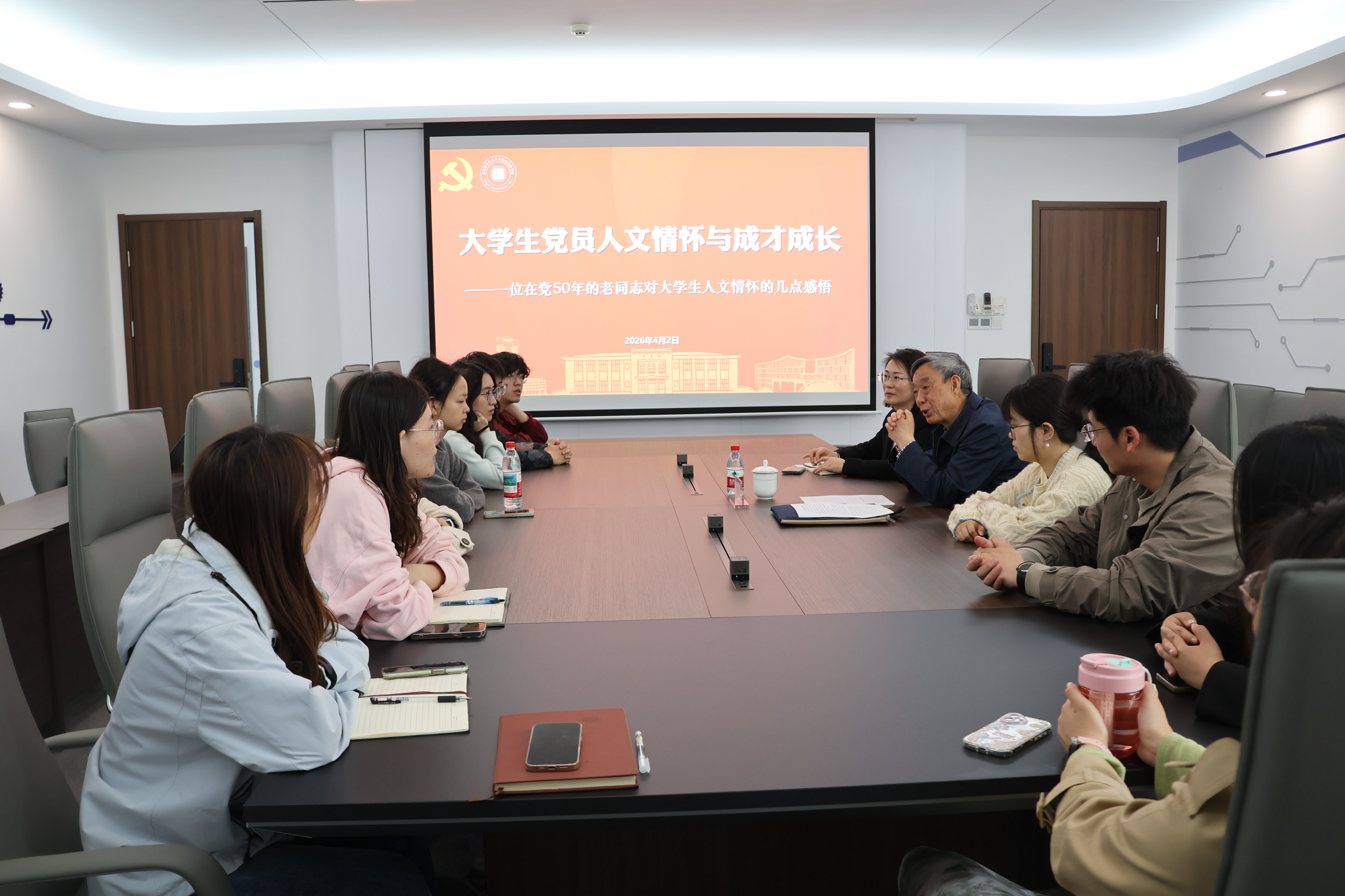 4月3日,色情视频 邀请校关工委常务副秘书长丁秀东为2026届研究生党员讲授“大学生(党员)人文情怀与成才成长”专题党课,以思想引领为毕业生的研途收官,为奔赴人生新征程注入精神力量。学院党委副书记周聚主持活动,研究生辅导员李姝萱及2026届毕业生党员参与活动。